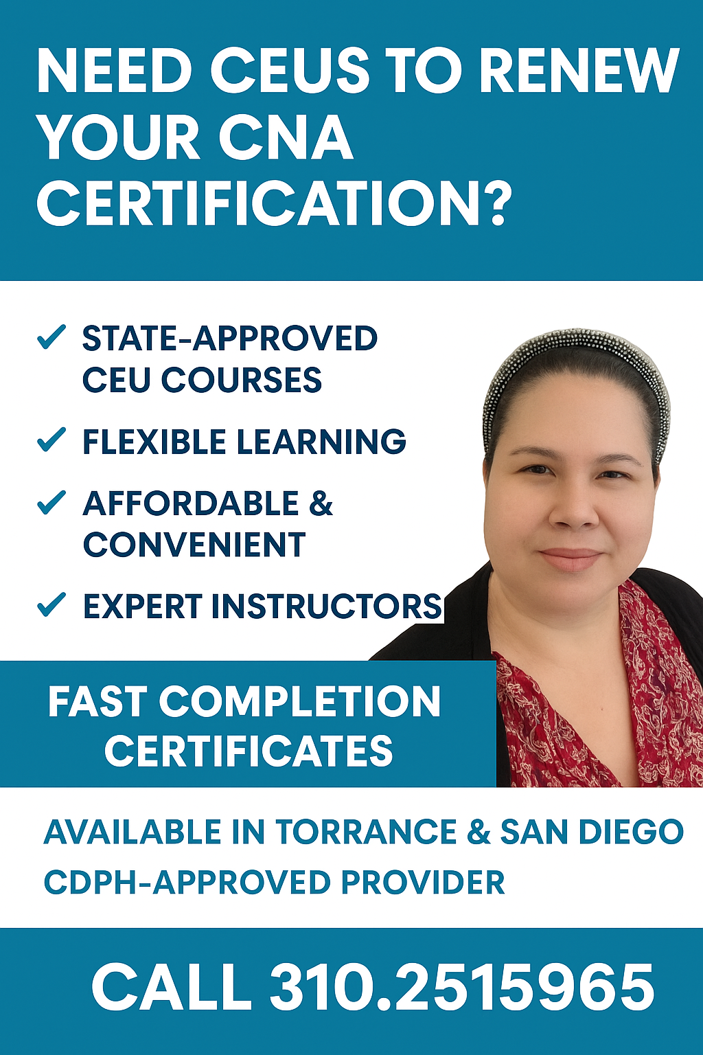 CNA Class in Morena Blvd, San Diego-92117 near Costco. Call 3102515965. Ask for Marie